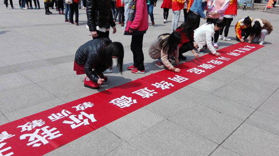 为倡导大学生树立文明上网意识,提高大学生文化修养,2015年4月8日,QY球友会体育在一餐广场积极开展了“文明上网”签字活动,2014级部分学生参加此次活动。