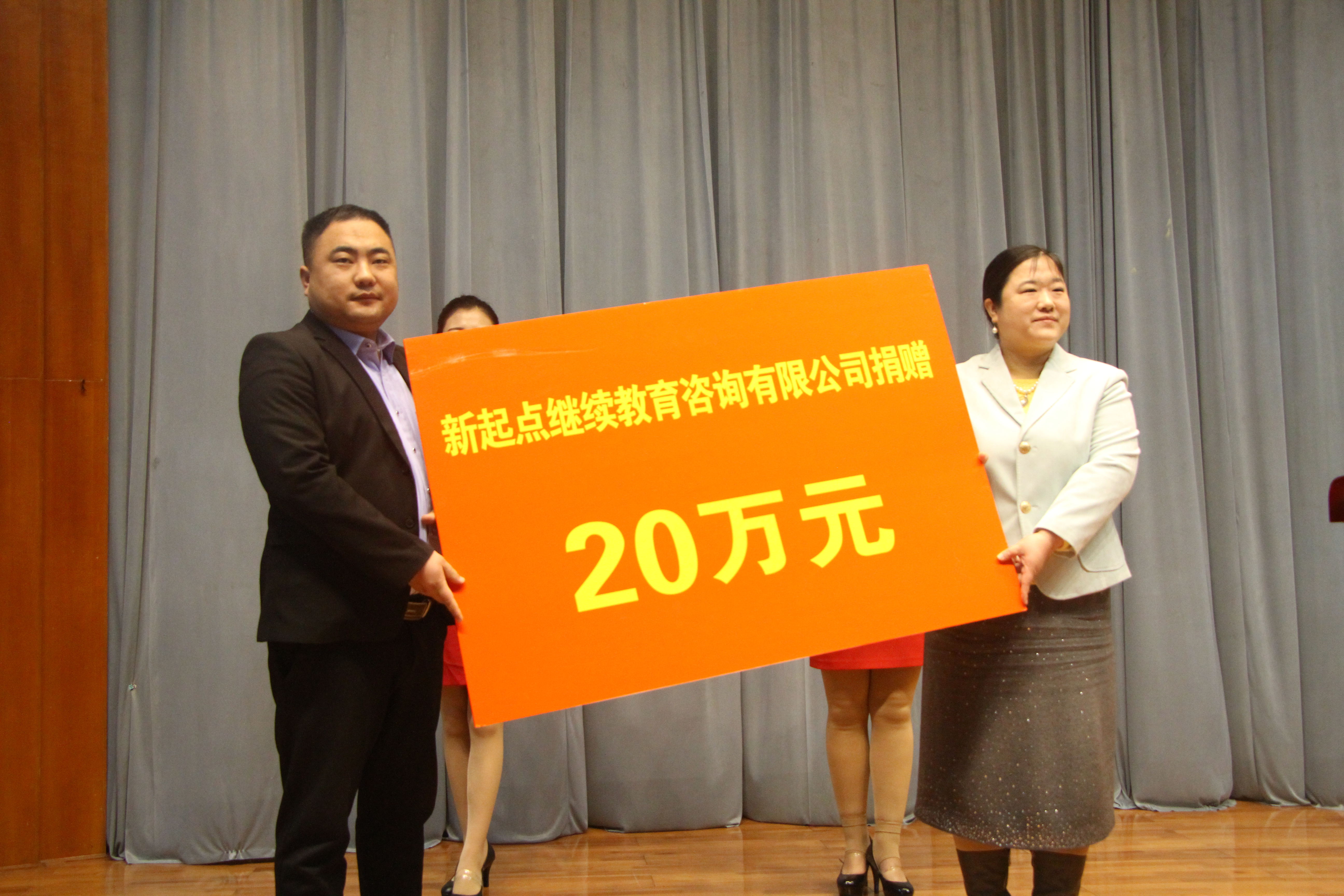 贾丽副书记接受“新起点继续教育咨询有限公司捐赠20万元”
