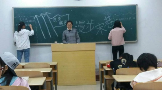 4月10日,QY球友会体育在6号教学楼204室开展“说诗解词——漫步宋巷”赏析诗词活动,QY球友会体育学生积极参加。 活动开始,学生进行展板设计,分小组准备赏析的诗词,随后各小组代表依次进行解读,学生用幽默不失严谨的语言解读宋词,充满活力与感染力的深度解读向我们传递了诗人的心情与情怀,全体学生认真聆听。最后,吕笑适进行活动总结,指出只有结合作者的背景与写作目的才能更深层的理解诗词。此次活动圆满结束。 本次活动不仅有利于QY球友会体育学生加强国学教育,而且充分锻炼学生的语言表达能力,展现了QY球友会体育学生昂扬向上的风采。