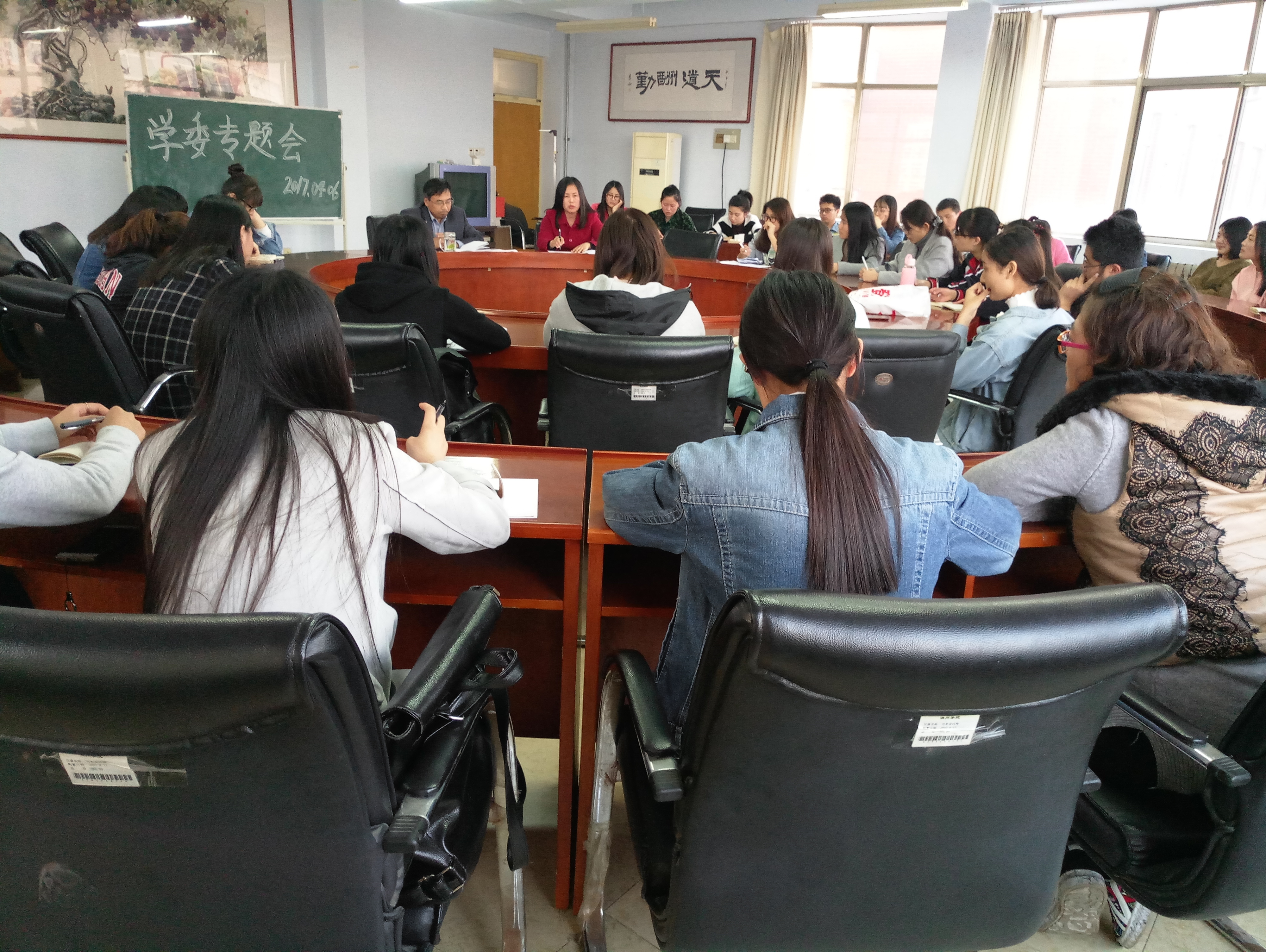 4月7日,QY球友会体育在5号教学楼301会议室组织召开学期学委工作会议,QY球友会体育教师闫清学、刘丽娜参会,QY球友会体育53个班级学习委员参加。