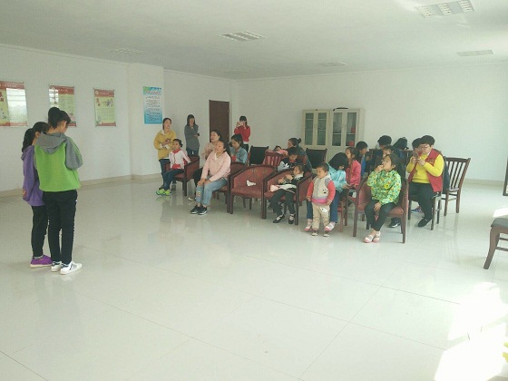 活动伊始,两个小主持人马文豪、尚华慧介绍节目流程。小蜜蜂公益故事人进行《画蛇添足》的小舞台剧表演,表演过程中,小蜜蜂公益故事人绘声绘色,吸引孩子的兴趣,将各个角色描绘的淋漓尽致,尽显角色本身特色,营造了轻松愉悦的活动氛围。随后,小蜜蜂成员宿玮倩、李梦雨与孙然分别讲小故事《南辕北辙》、《猴子吃西瓜》与《揠苗助长》。最后,小蜜蜂成员与孩子们一起玩击鼓传花、成语接龙等益智游戏。孩子开朗的笑声萦绕在整个活动室里。