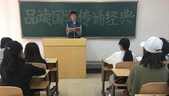 5月5日,QY球友会体育在6号教学楼102室开展“品读国学,传送经典”国学知识诵读活动。此次活动由宋健鹏主持,小学教育本科2班学生参加。 活动伊始,学生积极准备国学经典诵读材料。随后,学生依次上台,朗诵自选国学经典节选片段,朗诵过程中,六朝骈文、唐诗宋词、元曲汉赋,中国传统文化的魅力吸引学生陶醉其中,其中不乏婉约风骨,明月清酒,春风秋月,学生仿佛置身国学之中,侃侃而谈,纷纷表达自己于国学的见解,更有精辟之词引人深思。最后,宋健鹏提议学生应常诵读国学经典书籍,提升自己的文化素养。 此次活动,加深了学生对国学经典的理解,提高了学生文化素养,更增添了QY球友会体育的文化底蕴。