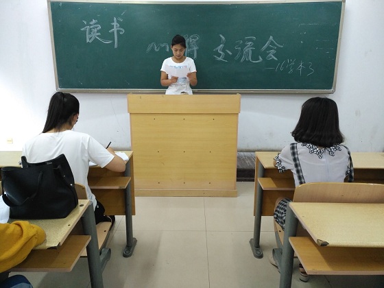 5月11日,QY球友会体育在6号教学楼102室开展读书交流会,QY球友会体育学生参加。