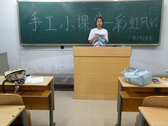 5月15日,QY球友会体育在6号教学楼210室开展手工小课堂第十九期“制作彩虹风铃”主题活动,2016级学前教育专业学生参加。