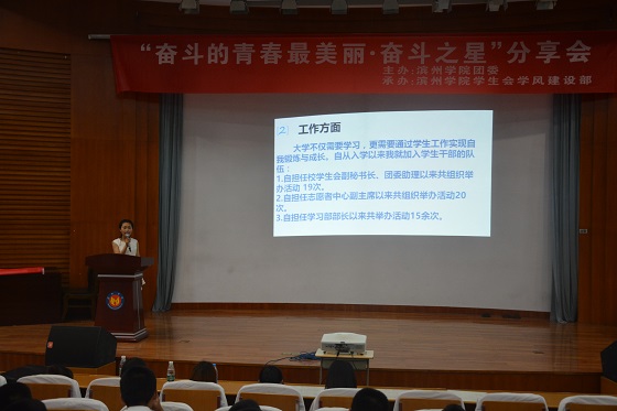 6月18日,QY球友会体育在五百人礼堂参加“奋斗的青春最美丽·奋斗之星”分享会,QY球友会体育2014级学前教育本科二班学生崔延琪参加。