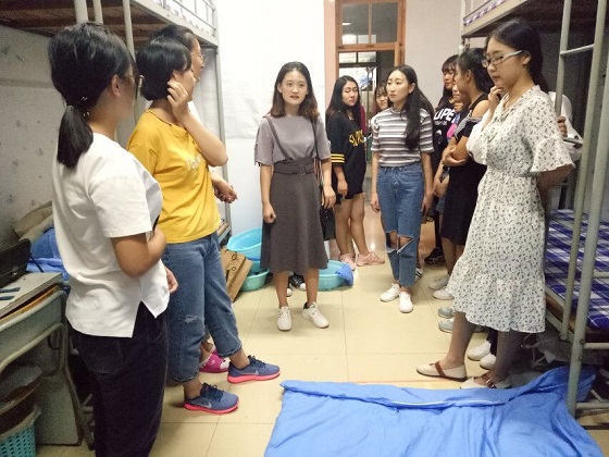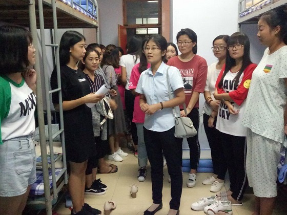 活动过程中,刘俊杰、李素娟同学生会成员走进新生宿舍,对院系的基本情况做简单介绍,与2017级的新生们进行了交流,给她们详细的解答了生活中的困难。告诉了新生最近的日程安排和军训的注意事项,以及大学生活方面的问题。李素娟殷切嘱咐大一新生们把宿舍当成自己的家,同学间在生活上要相互关爱,在学习上互相帮助,养成良好的生活学习习惯,并叮嘱新生们要提高安全意识。一个小时的活动进行的愉快而顺利。最后在欢声笑语和不舍中结束!