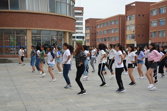 9月28日,QY球友会体育“轻松一刻”跳操活动在文理广场进行,QY球友会体育2017级学生参加。