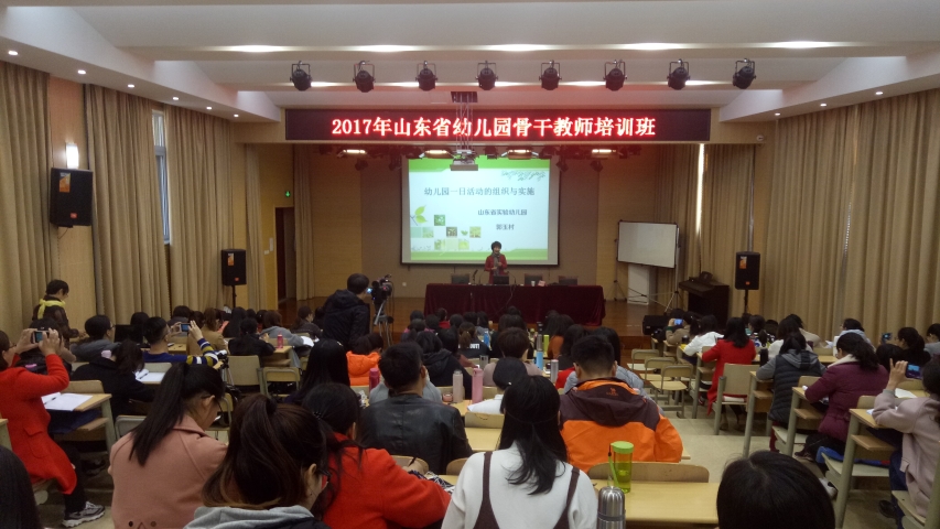 活动伊始,郭玉村以辨别符号真伪的游戏切入幼儿园一日活动的组织和实施这一培训主题。教师积极回答互动不断。其次,郭玉村就为什么我们对熟悉的东西反而关注不够、什么样的教育是好的教育两个问题与教师展开激烈的讨论。随后,郭玉村从入园环节、离院环节等六个方面介绍如何高效完成幼儿园一日活动的组织与实施。最后,郭玉村介绍三条安全保育小贴士,以此告诉教师要把平凡的工作做深刻,把简单的事情做完美。此次山东省幼儿园骨干教师培训班在教师的掌声中顺利结束。