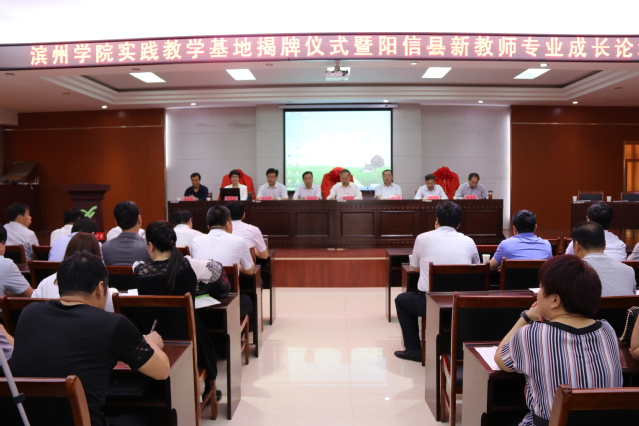 5月25日,滨州学院实践教学基地揭牌仪式暨阳信县新教师专业成长论坛在实验小学成功举行。滨州学院人文学院党总支书记薛长河,滨州学院QY球友会体育院长张道祥,滨州市教育局教师工作科科长李玉国,阳信县教育工委常务副书记、教体局党委书记、局长郑景华等领导出席。阳信县中小学校长、中心幼儿园园长、2017年招考就业的新教师及我校支教学生共约300余人参加活动。