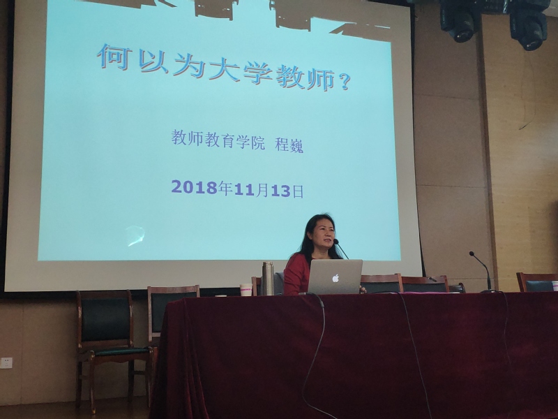 程教授以“何以为大学教师”为题进行了精彩分享,程教授首先介绍教师的基本任务是教书育人,并认为当代大学之师应具备以下三方面的素质和能力:认真教学、积极科研、热爱学生。
