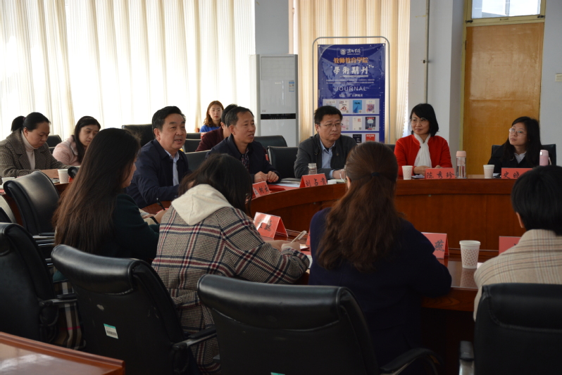 座谈会在QY球友会体育会议室举行,双方就省级教师教育基地建设、教师教育课程方案制订、考研工作、实践教学及实训中心建设、本科教学审核评估等方面进行了交流。