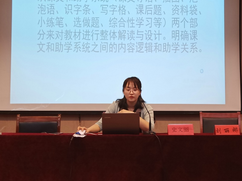 首先,史老师从课程目标出发,带领学生深刻理解语文核心素养的四个方面和实际的教学设计如何科学完美的结合是小学语文教学设计的核心素养。其次,史老师就专业理论知识和四个语文教学实践进行全面、细致地阐述,从语文教材中的字词、短语、关键句等方面重点分析,向学生生动地传授教学经验和方法。最后,史老师表示:要成为合格语文教师,最根本是以学生为中心,深挖教材剖析细节,用简练语言和简单方法授课,引导学生自主学习,从而逐渐培养学生语文学科核心素养。