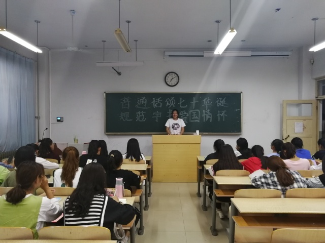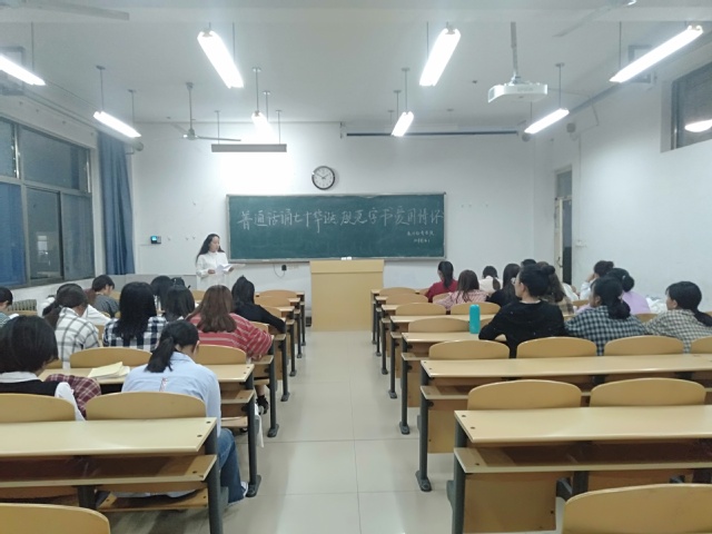 在此基础上,学前、小教各专业开展推普周主题班会活动。多才多艺的学前、小教专业精心设计了黑板报,开展的活动方面,有的以朗诵经典文章为主题,其中包括诗歌、散文和一些具有教育意义的文章,班上每个同学都积极响应参加了这次朗读活动。通过这次活动也让他们深深感受到讲好普通话是朗诵文章的基础;有的班级向同学们介绍了普通话的好处,以及如何说普通话和普通话美文欣赏和普通话朗诵;有的班级以游戏的方式,让同学们说绕口令、讲故事等形式开展了活动。相信通过此次活动,会使同学们更加坚定普通话对于我们每个人的意义,同样也使得每个人都重视在日常生活中正确的使用普通话。