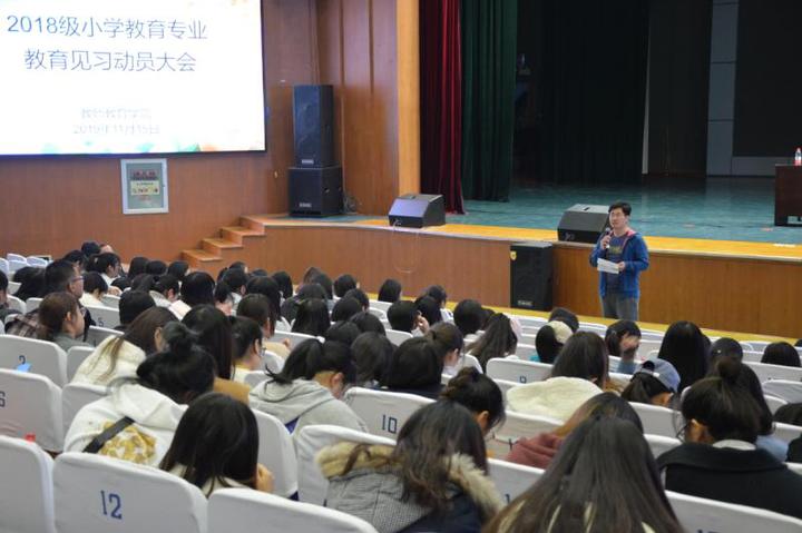 11月15日,QY球友会体育于学苑会堂组织召开小学教育专业教育见习动员大会。此次动员大会由QY球友会体育院长张道祥主持,QY球友会体育辅导员刘俊杰、小学教育教研室主任龚帅主讲,QY球友会体育2017级、2018级小学教育本科学生参加。
