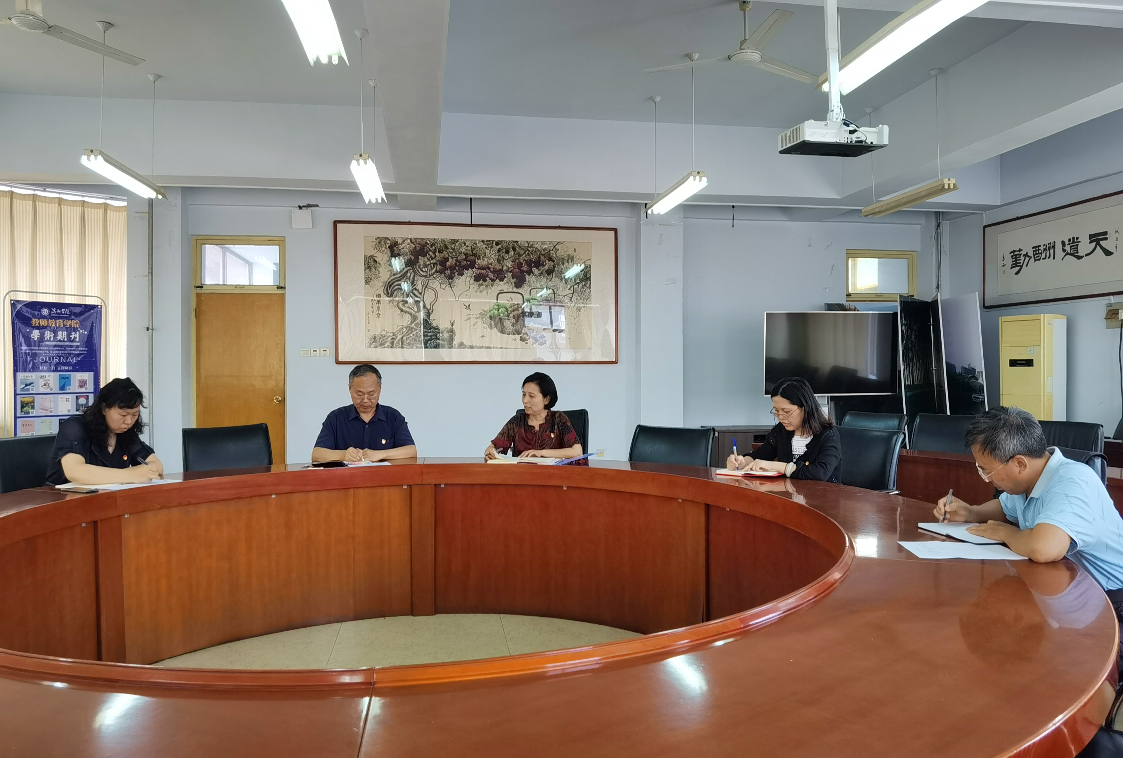 8月27日下午,教师教育学院党总支在5号教学楼301会议室召开思想政治、党建和意识形态工作务虚会,对学院前期开展的工作进行梳理,对下半年工作进行筹划部署。学院党总支书记王萍、党总支副书记张道祥、教工第一党支部书记石美萍、第二党支部书记闫清学、学生党支部书记时芸参加会议。王萍主持会议。