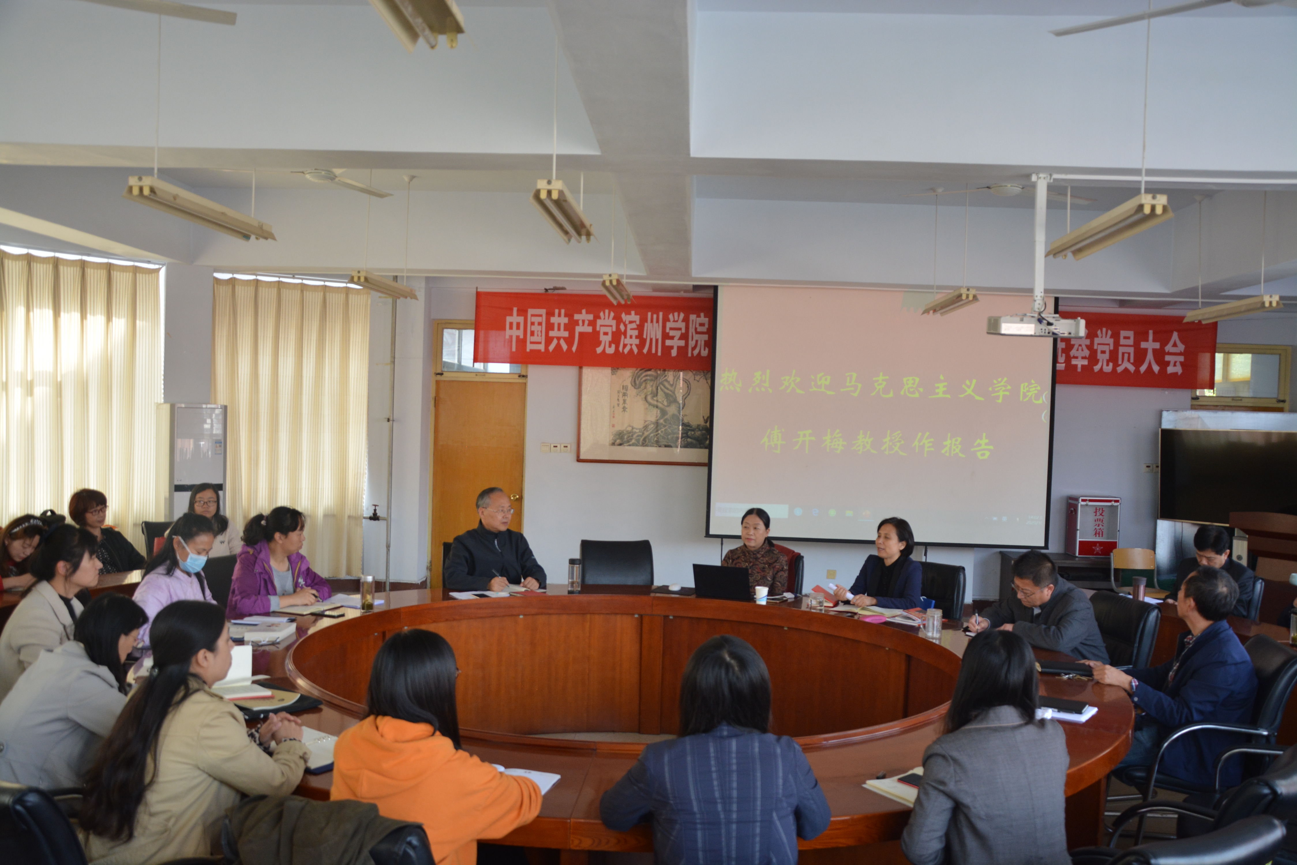 10月20日下午,QY球友会体育邀请滨州学院理论宣讲团成员,马克思主义学院副院长傅开梅教授在5教301作了“践行职业道德,提升职业素养”专题报告,QY球友会体育全体教职工参加了报告会,党总支书记王萍主持了报告会。