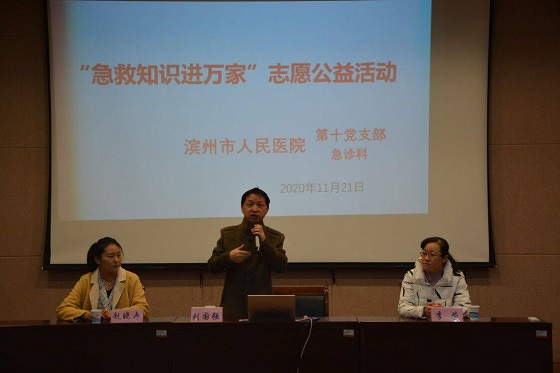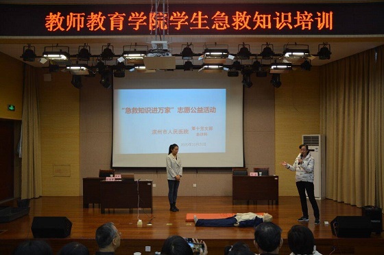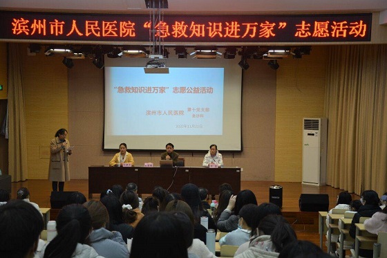 为让大学生学习正确施救方法,掌握急救自救的基本技能,11月21日,QY球友会体育于4号教学楼308多功能报告厅积极举办滨州市人民医院“急救知识进万家”志愿活动暨QY球友会体育学生急救知识培训活动。本次活动诚邀滨州市人民医院急诊内科主治医师刘国强、副主任护师李莹及急诊科护师赵晓冉主讲,QY球友会体育党总支书记王萍、院长张道祥、学生科科长时芸、辅导员刘俊杰携QY球友会体育全体宿舍长和20跨学前本科全体学生参加。
