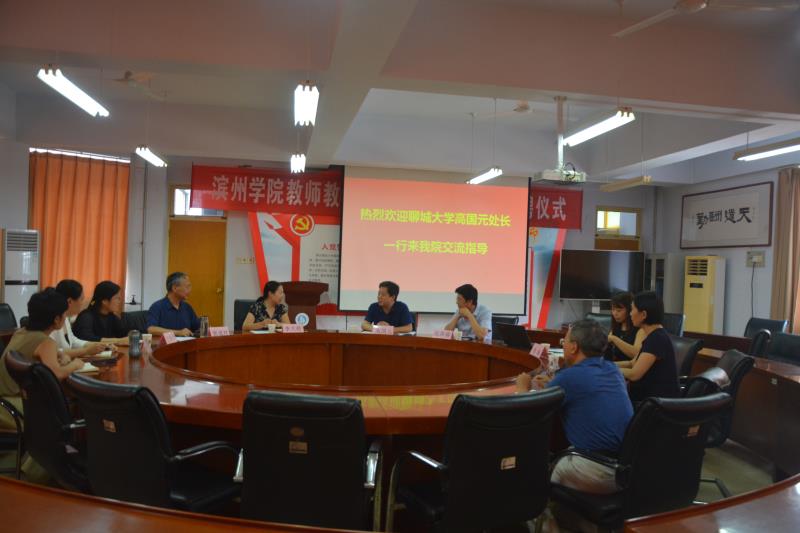 2021年7月23日下午,聊城大学教务处高国元副处长、传媒技术学院赵厚福老师等一行4人来我校交流。教务处副处长李大枝、QY球友会体育院长张道祥代表学校教务处和QY球友会体育进行了热情接待。李大枝介绍了我校人才培养方案修订、课程思政建设、教师专业发展、青年教师教学能力提升等方面的基本情况,张道祥就QY球友会体育小学教育、学前教育专业发展建设和实践教学情况进行了详细的介绍。