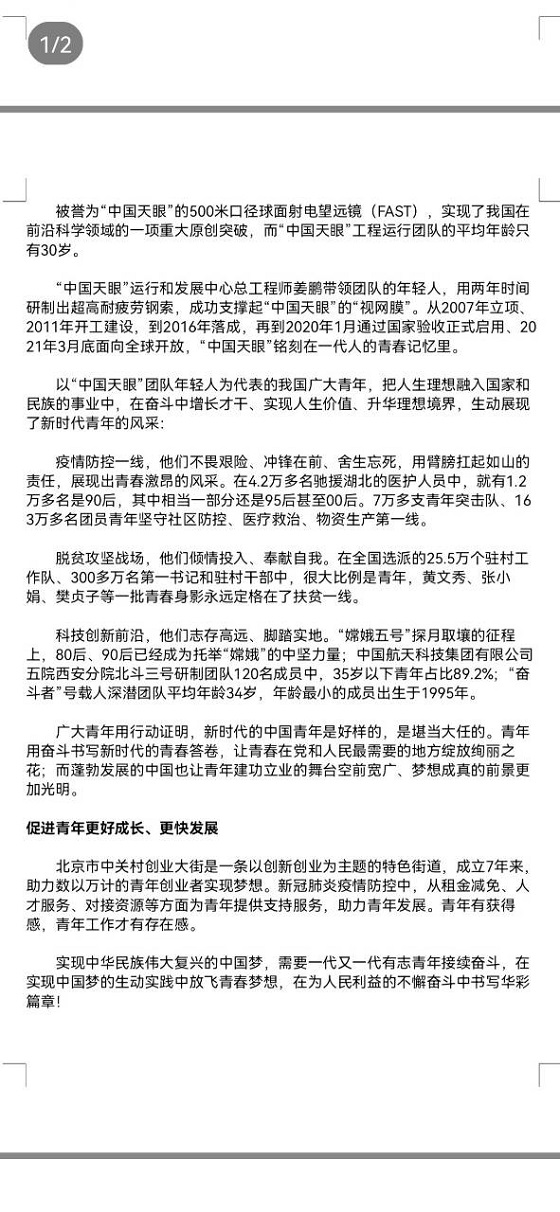 此次活动采取线上征集作品的形式开展。学生积极参与,踊跃报名,参赛作品各具特色,主题鲜明。活动过程中,学生利用课余时间主动了解五四精神的相关内容,充分结合自身对五四精神的理解,创作出一篇篇精彩的优秀征文。学生或激情澎湃地赞美祖国,或朴实真诚地阐述心中的梦想,或客观真实地剖析社会问题,或热情真切地提出对祖国的期许,参赛作品充满着青春活力和对未来生活美好的美好向往以及对祖国的期盼。最后,社团发展部干事根据参赛学生作品主题、内容等多方面评选出优秀作品。至此,此次活动圆满落下帷幕。