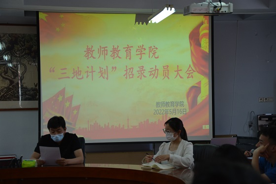 会议伊始,刘俊杰详细介绍了“三地(新疆自治区喀什地区、新疆生产建设兵团阿拉尔市、西藏日喀则市)计划”的基本情况,包括人才需求、工资待遇、福利政策等。随后,刘俊杰介绍往届前去志愿的师哥师姐的服务经历、服务期间的生活工作以及当地的基本情况,指出西部地区幅员辽阔、物产丰富、人文底蕴浓厚,是青年人实现理想抱负,实现人生价值的广阔平台。同时,刘俊杰也提醒广大毕业生在决定参加三地计划前要和父母沟通好,得到家庭的支持等。最后,刘俊杰再次对毕业生寄予期望:“希望同学们都能怀揣理想,做新时代的奋斗者和追梦人!”