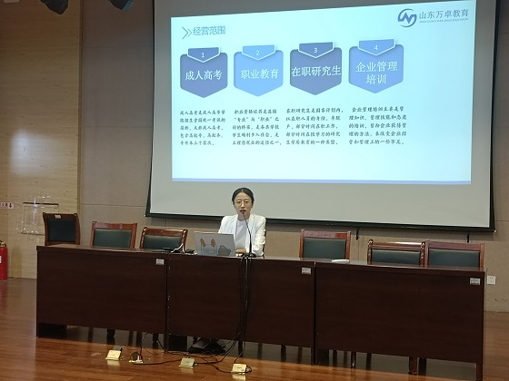 招聘会现场秩序井然,气氛热烈。参加企业包括德州卓识教育、济南万维教育等。活动开始,张道祥、王健勇、刘俊杰对毕业生送出诚挚的祝愿,而后主讲人通过视频播放的方式介绍了招聘单位的环境,人员组成,薪资待遇等并在为学生播放相关视频的同时对招聘单位进行更为详细的介绍。活动现场还通过ppt讲解,发放宣传资料等方式向毕业生详细介绍招聘单位的资料及前景。毕业生态度端正,认真听讲,仔细浏览宣传资料,选择自己感兴趣的招聘单位。各招聘单位以自己特有的方式,向在场学生详细地介绍了企业文化及招聘要求,为毕业生进行答疑、指导服务。会后,毕业生主动与招聘人员交流,了解岗位情况及专业发展前景。至此,本次活动圆满结束。