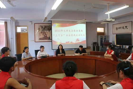为深入学习习近平新时代中国特色社会主义思想,喜迎党的二十大胜利召开,引导和帮助广大青年学生上好与现实相结合的“大思政课”,在社会课堂中“受教育、长才干、作贡献”,6月24日,QY球友会体育于5号教学楼301室举行2022年大学生志愿者暑期“三下乡”社会实践活动启动仪式。QY球友会体育党总支书记王萍、党总支副书记王健勇、辅导员老师和团队指导教师代表及学生代表参加了启动仪式。