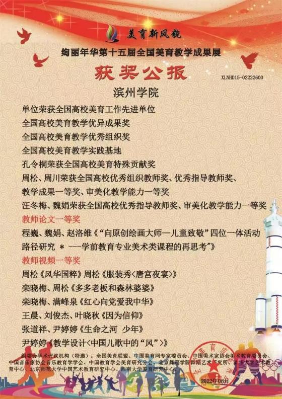 近日,“绚丽年华第十五届全国美育教学成果展”落下帷幕。经全国美育成果展组委会评审,我校荣获“全国高校美育工作先进单位”“全国高校美育教学优异成果奖”“全国高校美育教学优秀组织奖”“全国高校美育教学实践基地”,QY球友会体育副院长孔令桐荣获“全国高校美育特殊贡献奖”,QY球友会体育艺术教研室主任周松、教师周川荣获“全国高校优秀组织教师奖”“优秀指导教师奖”“教学成果一等奖”“审美化教学能力一等奖”,教师汪冬梅、魏娟荣获“全国高校优秀指导教师奖”“审美化教学能力一等奖”。