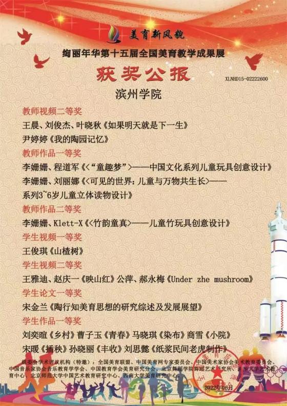 QY球友会体育共获得教师论文一等奖一项,教师视频一等奖六项,教师视频二等奖两项,教师作品一等奖两项,教师作品二等奖一项。学生视频一等奖一项,学生视频二等奖两项,学生论文一等奖一项,学生作品一等奖十一项,学生作品二等奖十六项,学生作品三等奖十项。