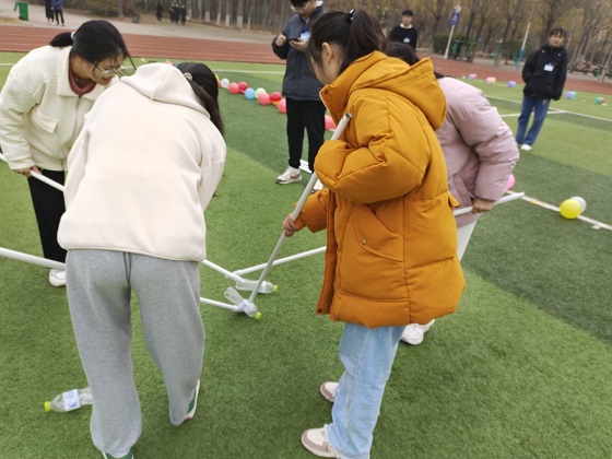 此次宿舍游园会以“真诚、有爱、团结”为原则,通过踩气球、珠行万里、棒者无敌等挑战项目加强学生之间的熟悉程度。首先进行“踩气球”游戏,在比赛中学生表现出极大的游戏热情,或主动“攻击”,或稳中求进,以灵活的身姿在气球中穿梭。作为开场活动,在消除学生紧张心理、调动学生参与积极性等方面起到“破冰”效果。珠行万里游戏中,学生背对背夹气球往返,需两人同时发力、步履一致,尤其考验学生的默契、耐力和合作能力。活动现场欢呼此起彼伏,整场比赛气氛激烈又不失愉快和谐。活动过程中,QY球友会体育学生严格遵守游戏规则,互帮互助、团结协作,全身心投入,保持失败不气馁、成功不骄傲的良好心态,最终顺利通关。游戏结束后,学生以宿舍为单位领取奖状并在合照墙处打卡留念。