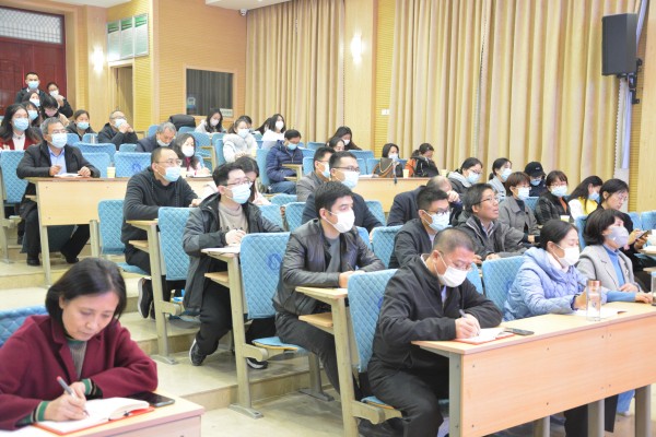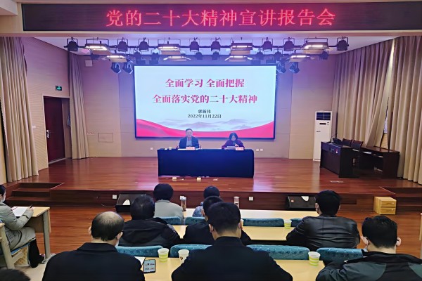 11月22日下午,校党委委员、副校长郭新伟在4教308多功能报告厅作了题为《全面学习、全面把握、全面落实党的二十大精神》的宣讲报告。教务处、国际交流与合作处、QY球友会体育全体教师及部分学生代表参加了报告会。
