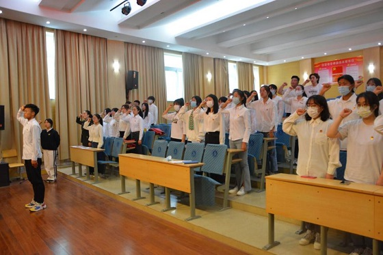 活动伊始,刘俊杰介绍思想政治教育会议的基本流程,强调本次活动的重要意义。随后,全体学生干部一同观看专题片《共青团光荣历史》,回顾新民主主义革命时期中国青年运动波澜壮阔的历史进程,并纷纷表示在以后工作学习生活中定会听党话、跟党走,不怕牺牲、顽强斗争。紧接着,张辉带领学生干部集中学习“砥砺奋进守初心,青春献礼党的二十大”专题,深入解读《决议》,领悟贯彻党的十九届六中全会精神,引导学生干部树立正确的理想信念和价值取向。随后,由优秀党员程晓娜、梁潇涵进行宣讲,分享奉献故事,呼吁全体学生干部学习先进,跟党奋斗。同时,韩润佳诵读经典,引导学生干部重温红色历史,浸润“红色初心”,不断锤炼个人思想品格,当好红色薪火的传承人。最后,全体起立,向团旗宣誓,唤醒入团初心,增强团员意识。