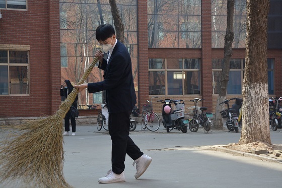 为倡导节约资源、低碳生活的理念,全面构建和谐文明校园,3月5日,滨州学院在全校开展“美丽校园伴我行”卫生清扫志愿服务活动,QY球友会体育学生积极参加。