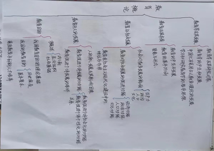 本次活动以创作思维导图的形式开展,以教育为主题,通过制作教育概论课程导图,加深学生对专业知识的理解,把握复杂教育现象的基本特征。活动伊始,学生踊跃报名、积极参与。活动过程中,学生充分利用聚合思维、发散思维、逻辑思维等多种思维方式,使用树形图、流程图、气泡图等多种思维图示法,结合专业知识制作独特新颖的思维导图。作品主题鲜明,见解独到,研究深入。充分表达学生对教育概论课程中教育与个人、社会发展之间规律性联系的认识与见解。活动最后,评选人本着公平公正的原则选出优秀作品,整理获奖名单。
