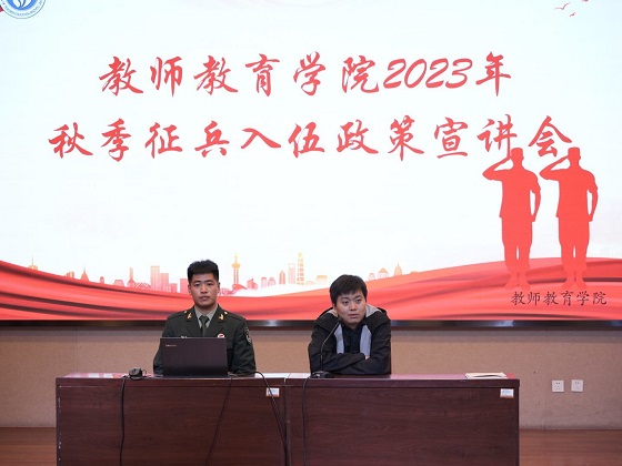 会上,退役复学学生代表赵海洋带领学生观看2023年征兵入伍宣传视频,引领学生领略军人的飒爽英姿,感悟军人吃苦耐劳、坚毅顽强的精神。随后,赵海洋结合自身入伍经验从大学生征兵的优势、应征入伍的条件、入伍流程、学费补偿代偿、升学复学、退伍政策及其他优待政策等方面入手,为学生解读最新参军优惠政策,分析入伍要求和条件,鼓励学生踊跃投身军营、报效祖国。刘俊杰重点讲述保留入学资格、学籍保留及退役复学专升本等学生关注的相关问题,列举历年来学生征兵入伍的典型事例,打消学生入伍后学业方面的顾虑,激励更多学生用军营来淬炼意志,成为有理想、敢担当、能吃苦、肯奋斗的新时代好青年。刘俊杰强调征兵宣传的本质目的是在学生心中留下一颗萌芽,鼓励学生做“最可爱的人”,带着青春梦想参军,自觉接受祖国挑选,从校园走进军营施展才华,为实现伟大的中国梦、强军梦贡献出自己的一份力量。
