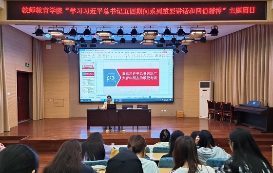 为深入学习贯彻党的二十大精神,进一步激励学生践行社会主义核心价值观,5月21日,QY球友会体育于4号教学楼308多功能报告厅举办“学习习近平总书记五四期间系列重要讲话和回信精神”主题团日活动。本次活动由QY球友会体育学生第一党支部书记李素娟主讲,QY球友会体育部分学生参加。