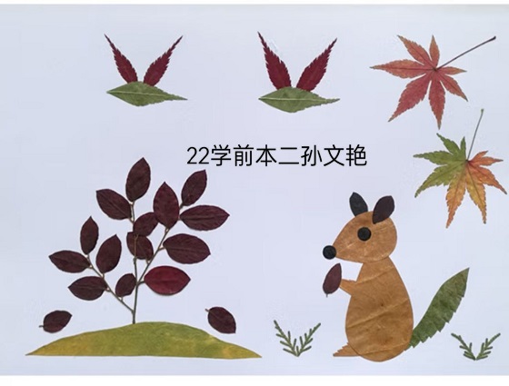 本次活动采取线上方式进行,旨在为学生提供一个增长知识、提高美育水平的机会。活动开始前,学生踊跃报名,以严谨认真的态度面对本次教具设计活动。活动过程中,学生以各种各样的落叶为材料,根据树叶的不同形状和颜色,通过剪、粘、画等方式,巧妙将教学主题与树叶贴画相结合,创造出新颖的树叶贴画教具,成功的将课堂抽象枯燥知识融入到具体趣味贴画。教具作品能够充分吸引受众的目光,为枯燥的课堂教学增加乐趣,帮助学生在将来教学中打造创新性趣味课堂。活动最后,学生立志提高思维想象力及动手制作能力,制作出更好的教具作品,助推教学目标的实现。至此,本次活动圆满落下帷幕。