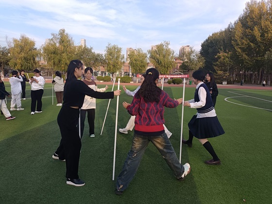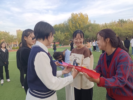 活动开始前,工作人员进行场地布置与道具准备,并向学生讲解“交替扶棍子”、“多人传呼啦圈”、“背对背夹气球”、“能量传输”四个项目游戏规则。随后学生积极商讨游戏策略,利用道具进行试验。首先进行的是“交替扶棍子”项目,裁判一声令下,学生共同放手接棍,围圈交替扶棍子,挑战成功后学生纷纷发出欢呼并兴奋地击掌拥抱。在“背对背夹气球”项目中,学生两人一组,以快取胜。各个项目皆有序进行,虽然比赛过程时有难关,如风大导致气球乱飞、配合不熟练等,但参赛学生始终齐心协力、集思广益,在游戏中释放激情,充分发挥集体意识,凭借着默契与合作,最终完成比赛。活动最后,参赛学生集体拍照留念并配合工作人员整理好场地卫生。至此,本次活动圆满结束。