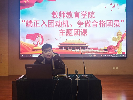 10月18日晚,QY球友会体育“端正入团动机、争做合格团员”主题团课于4号教学楼308多功能报告厅开展。本次活动由QY球友会体育团总支副书记刘俊杰主讲,QY球友会体育全体入团积极分子参加。