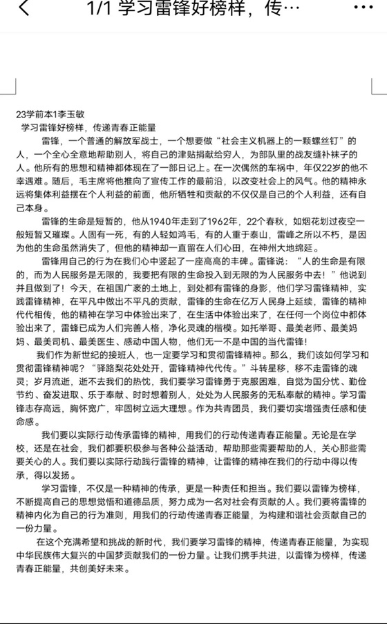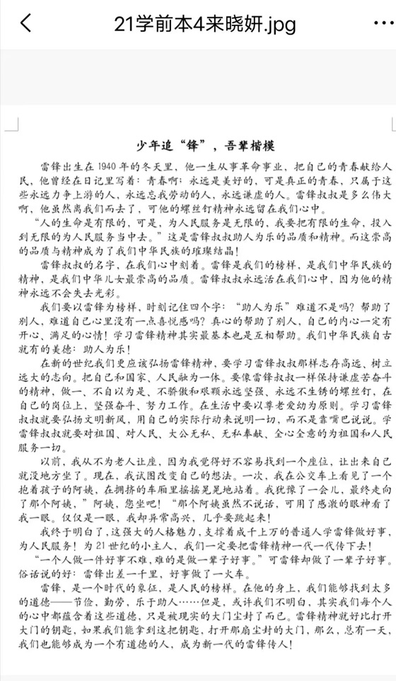 为丰富校园文化,进一步弘扬雷锋精神,培养学生树立正确的价值观,增强学生社会责任感,12月7日,QY球友会体育于线上举办“学习雷锋好榜样,传递青春正能量”青春奋斗主题征文大赛。本次活动由QY球友会体育部分学生参加。