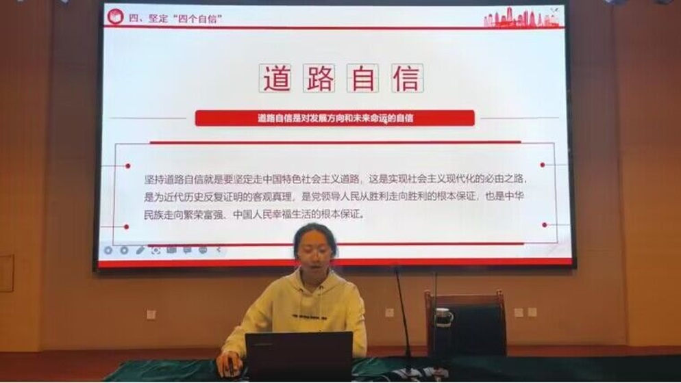 会议伊始,来晓妍组织学生干部学习党的十九大精神、习近平总书记关于“四个自信”的重要讲话等文件,引导学生干部深入领会“四个自信”的内涵和意义,明确“四个自信”的重要作用。随后,来晓妍强调学习“四个自信”重要论述的重要性和必要性,引导学生将专业知识与实际相结合,努力增强“四个自信”,坚定目标,砥砺前行,为实现中华民族伟大复兴的中国梦不懈斗。紧接着,各位学生干部积极发表自己的感受,表示要继续深入学习习近平新时代中国特色社会主义思想,将理论与实践相结合,为实现中华民族伟大复兴贡献青春力量。