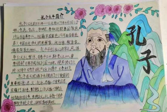 活动准备阶段,学生严谨认真地搜集相关资料,整理设计思路,准备各种绘画工具。活动过程中,学生始终秉承“弘扬优秀传统文化”的理念进行设计与排版,采用多种形式如水彩、油画等制作丰富精美的插图,加入孔子文化相关知识丰富手抄报内容,相互讨论、积极交流进而完善作品,展现出学生丰富多彩的想象力及对孔子文化的学习热情。活动结束后,学生纷纷表示通过本次活动不仅进一步了解了孔子的相关故事,而且感悟到孔子文化背后的深刻内涵。最后,评选人员依据公平公正公开的原则对上交作品进行评奖。至此,本次活动圆满结束。