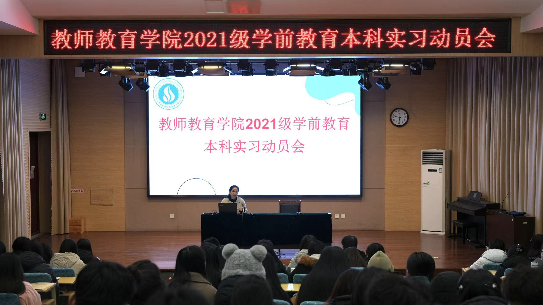 1月9日,QY球友会体育于4教308室召开2021级学前教育本科生实习动员会,会议由副科级教学秘书程婷婷主持,QY球友会体育院长徐慧文、副院长孔令桐、学前教育教研室副主任李瑶出席本次大会,2021级学前教育专业全体本科生参加。