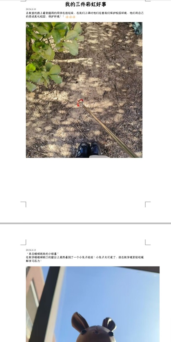 本次活动旨在通过分享自己做过的彩虹好事,向身边人传递正能量,让更多人了解乐于助人行为,引导学生积极加入做好事行列。活动伊始,活动相关负责人员通过各种途径宣传活动目的和活动内容,学生了解后积极参与,踊跃报名。活动过程中,学生凭借视频、照片、文字等方式记录下做过的好事,如到敬老院关心帮助老人,去孤儿院帮忙照顾儿童,陪儿童做游戏,搀扶老奶奶过马路,救助动物等,将各种各样的彩虹好事与其他学生分享,让更多学生了解到活动的意义,激发学生做好事的积极性。活动最后,评选人员秉承公平、公正、公开原则,评选出一二三等奖。至此,本次活动圆满结束。
