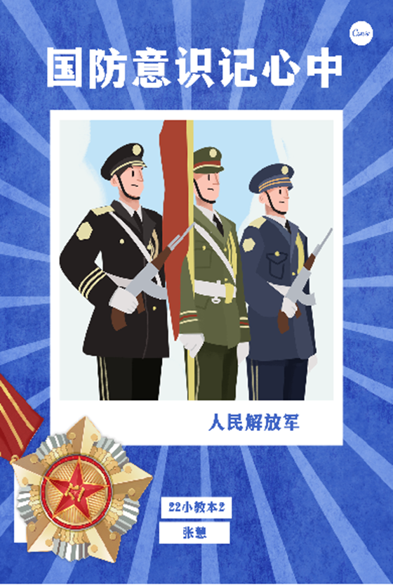 在海报制作的过程中,同学们紧紧围绕主题,从历史事件、军事装备和英雄故事中寻找灵感,将山川、星空、军事武器融合在一起,把国防元素与不同场景结合,创造出独一无二的海报,让人眼前一亮。最后,同学们在海报上添加醒目的文字,用简洁而有力的语言表达出想传达的信息,让人过目不忘。