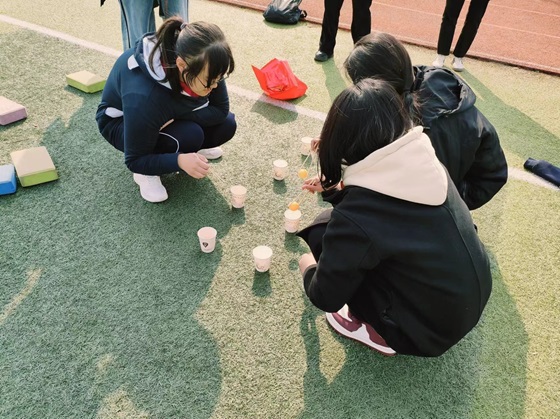 本次活动旨在通过户外小游戏帮助学生增强自信心,改进自身形象,克服心理惰性。活动伊始,学生积极踊跃地参与当中。在“撕掉标签”活动中,他们勇敢干脆地撕下关于女生的“毒标签”,用心写下如“做冬日里青翠的残碑”的温暖话语;在“筷子神功”活动中,他们小心翼翼地用筷子夹起乒乓球,以“迅雷不及掩耳之势”将球夹到另一个杯中;在“摸石过河”活动中,他们团结协作,依次将“石块”放在脚下成功“过河”。学生纷纷表示,本次活动不仅可以帮助学生锻炼自己,更能增进学生与学生之间的感情和凝聚力。至此,本次活动圆满结束。