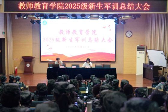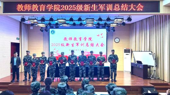 首先,王彤老师为新生们提供了大学生活指导和职业规划建议。她勉励同学们要将军训中养成的优良作风延续到今后的学习和生活中,明确学习目标,合理规划时间,积极参与社会实践,努力提升综合素质,为将来成为一名优秀的人民教师奠定坚实基础。随后,刘俊杰老师在总结中高度肯定了全体新生在军训期间的辛勤付出和显著进步。他指出,同学们在艰苦的训练中锤炼了意志品质,增强了组织纪律性和团队协作精神。最后,大会对军训期间表现突出的优秀志愿者和优秀标兵进行了表彰。在热烈的掌声中,优秀志愿者代表和优秀标兵依次上台领奖,康纯佳书记为他们颁发了荣誉证书。