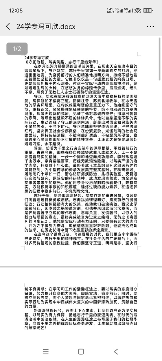 本次活动旨在帮助学生在书写与阅读中深化认知、坚定信念,激励学生以“守正”明方向,以“笃实”筑根基。活动伊始,学生积极报名,踊跃参加,并通过网络、书籍等途径搜集相关材料,挖掘身边坚守初心、脚踏实地的故事,为征文准备素材。活动过程中,学生将奋斗故事中的反思与经验作为素材进行写作,投稿作品题材丰富、情感真挚。有的探讨当代人的使命传承,有的反思守正笃实的实践路径。学生纷纷表示本次活动让自己找到了守正的初心底色,同时还提升了写作技巧和表达能力。活动最后,评选人员本着公平、公正、公开的原则进行评选并整理获奖名单。至此,本次活动圆满结束。