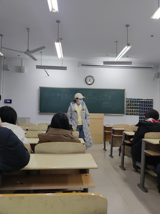 为筑牢学生的诚信底线与法治意识,明确考试违纪的严重代价,引导学生自觉维护考场公平,12月14日,QY球友会体育于6号教学楼303室,开展"严守考纪红线,树立诚信品格"主题教育班会。本次班会由刘鑫老师主持,由QY球友会体育部分学生参与。