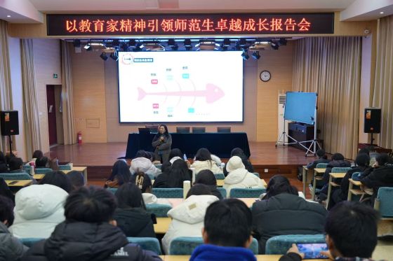 报告中,陈玉芝老师立足自身数十年从教实践与成长积淀,围绕教育家精神的核心内涵与实践路径,与学员们展开深度交流分享。她以“尊重、得法、主动”为核心关键词,生动讲述了个人从教生涯中从摸索实践、复盘反思到突破创新的进阶历程,深刻阐释教育工作者坚守育人初心、在与学生的双向互动中持续精进的职业追求。期间,陈玉芝老师分享的“随心所欲不逾矩”的教育智慧,以及“协同而非替代”的育人理念,为在场学员带来了思想启迪与精神滋养,进一步激励大家以教育家精神为指引,立志成长为有情怀、有本领、有担当的未来教育者与社会建设者。