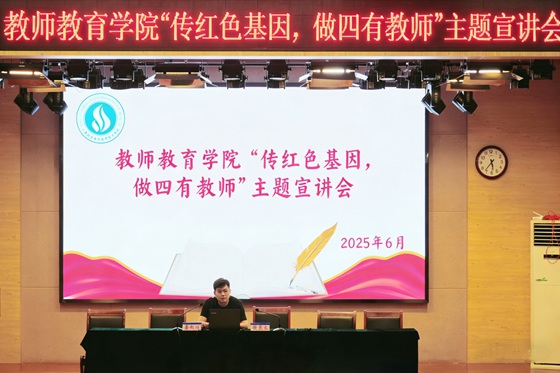 为厚植师范学子红色情怀,引导学生传承红色基因、涵养师德师风,争做“四有”好老师,6月6日,QY球友会体育于4教308多功能报告厅召开“传红色基因 ,做四有教师”主题宣讲会。本次活动由团总支书记刘俊杰主持,QY球友会体育部分学生参加。